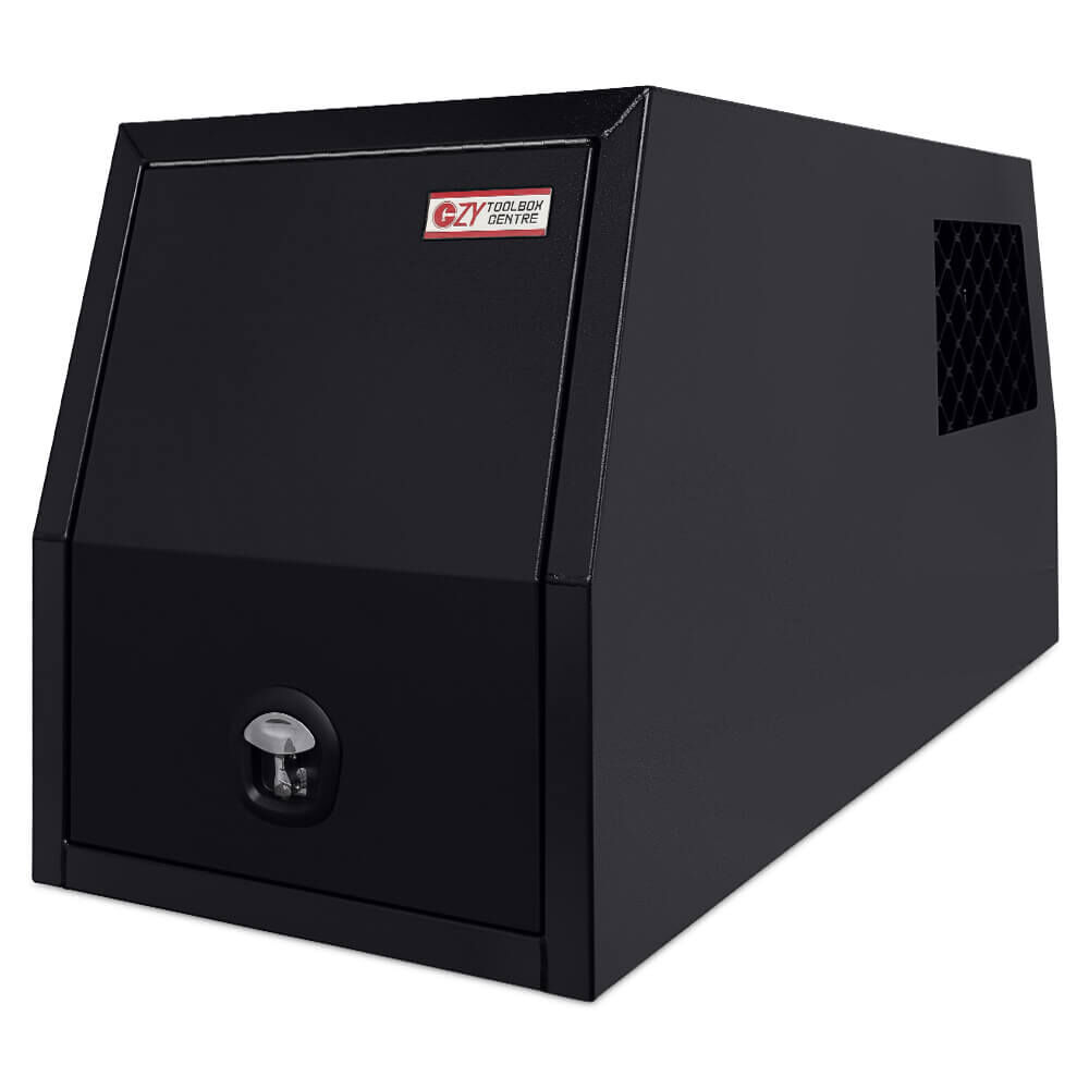 Ozy Toolboxes have a range of Premium Aluminium Dog Boxes built to withstand the toughest of conditions. Whether you’re storing tools, camping gear or after a safe place to transport your furry friend, our full seam welded units made from high grade aluminium, combined with the composition of whale tail compresson locks for optimum security, make our dog boxes perfect to suit your needs. These dog boxes not only look great but they are Durable, Reliable and extremely Affordable.