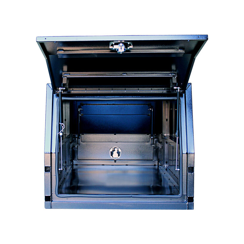 Ozy Toolboxes have designed a range of Premium Aluminium 1000mm High Canopies for those who have higher headboards such as the 79 series Land cruiser, or for those just wanting that extra internal height in their canopy for more storage. Whether you’re storing tools, machinery, camping gear and anything in between, our full seam welded units made from high grade aluminium, combined with the composition of whale tail compression locks for optimum security, make our canopies perfect to suit your storage needs. Plus, our cushion seals ensure a weather and dust resistant canopy to keep your belongings secure and dry. Each box comes fully reinforced with 40x40 bracing for a spare wheel carrier and adjustable gas strut brackets, so you can adjust how far the door opens up., Great if you are running an awning. These canopies not only look great but they are Durable, Reliable and extremely Affordable.