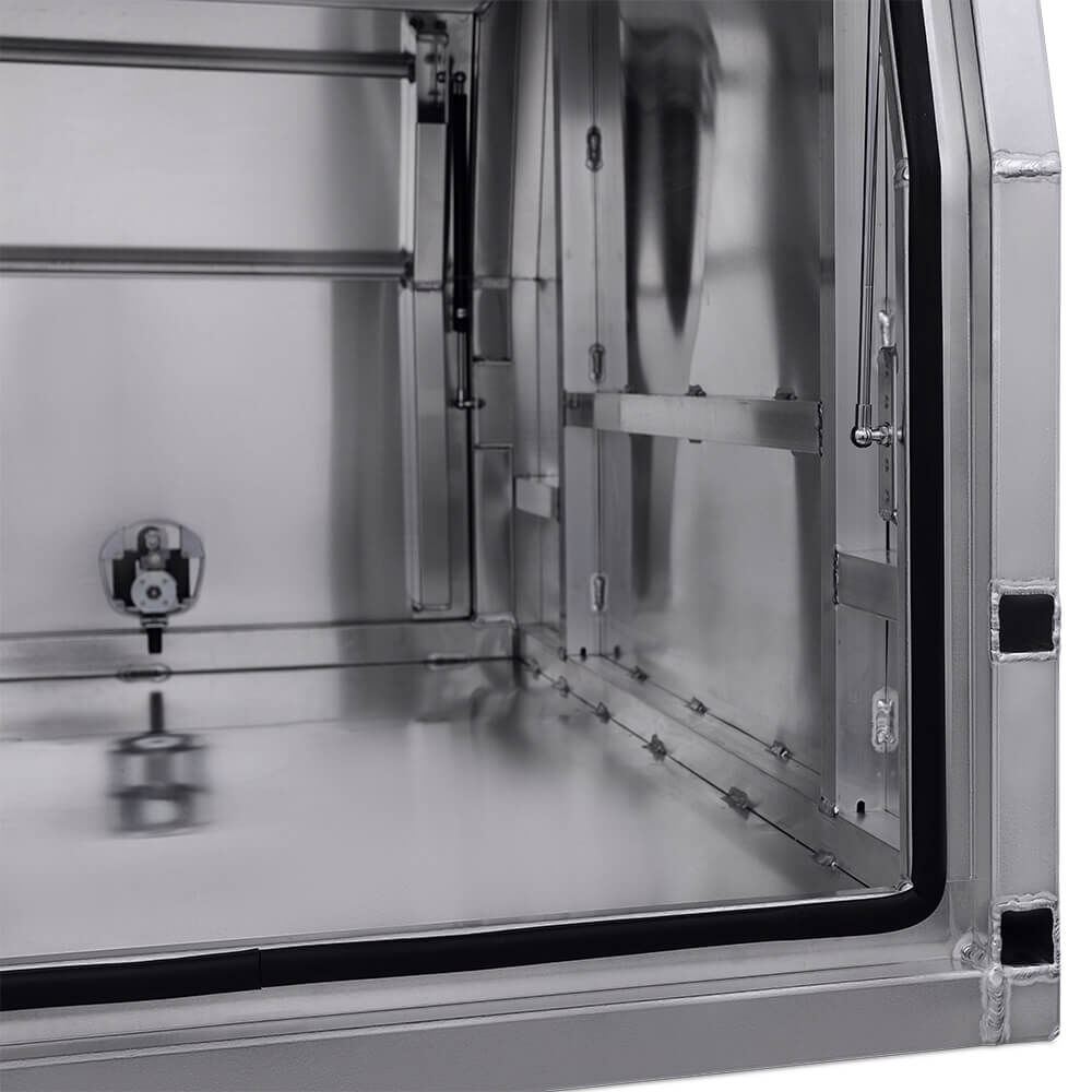 Ozy Toolboxes have designed a range of Premium Aluminium 1000mm High Canopies for those who have higher headboards such as the 79 series Land cruiser, or for those just wanting that extra internal height in their canopy for more storage. Whether you’re storing tools, machinery, camping gear and anything in between, our full seam welded units made from high grade aluminium, combined with the composition of whale tail compression locks for optimum security, make our canopies perfect to suit your storage needs. Plus, our cushion seals ensure a weather and dust resistant canopy to keep your belongings secure and dry. Each box comes fully reinforced with 40x40 bracing for a spare wheel carrier and adjustable gas strut brackets, so you can adjust how far the door opens up., Great if you are running an awning. These canopies not only look great but they are Durable, Reliable and extremely Affordable.