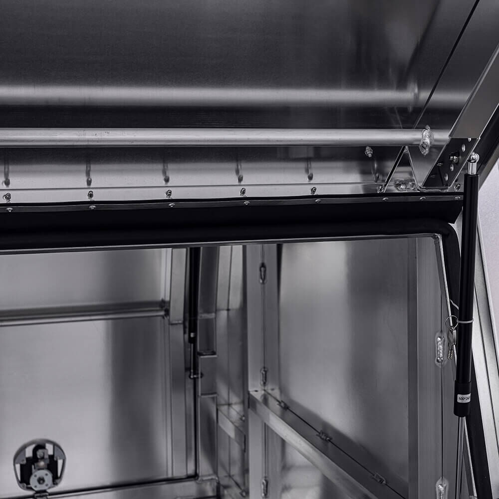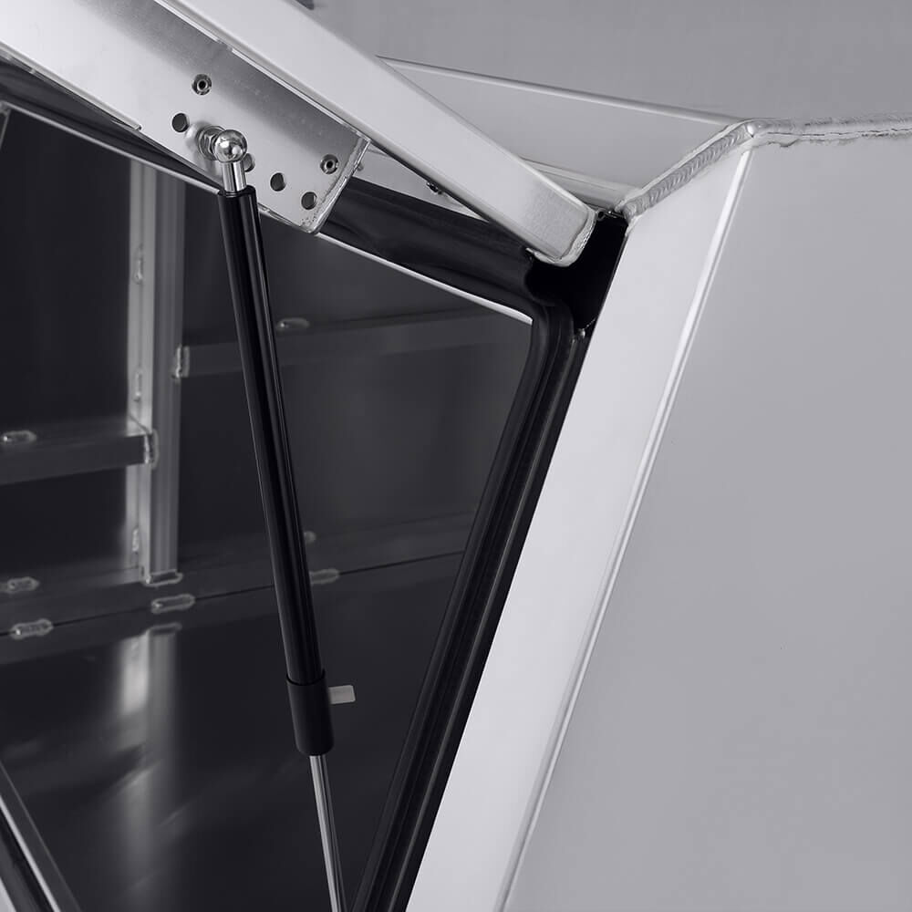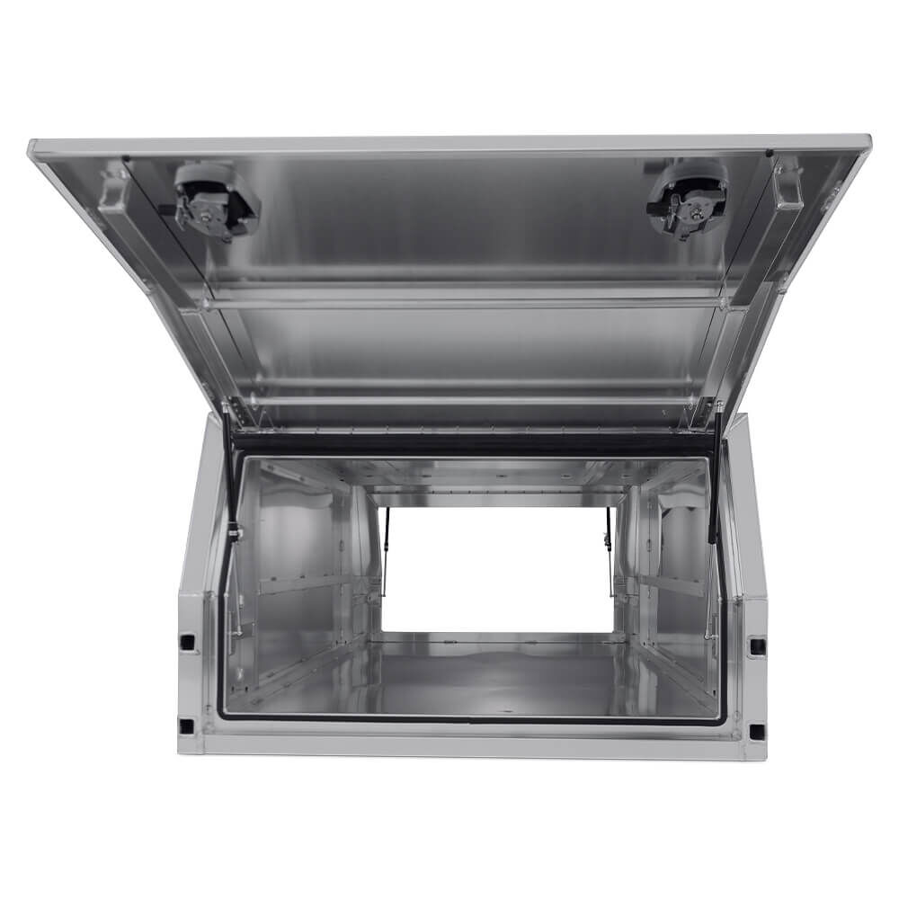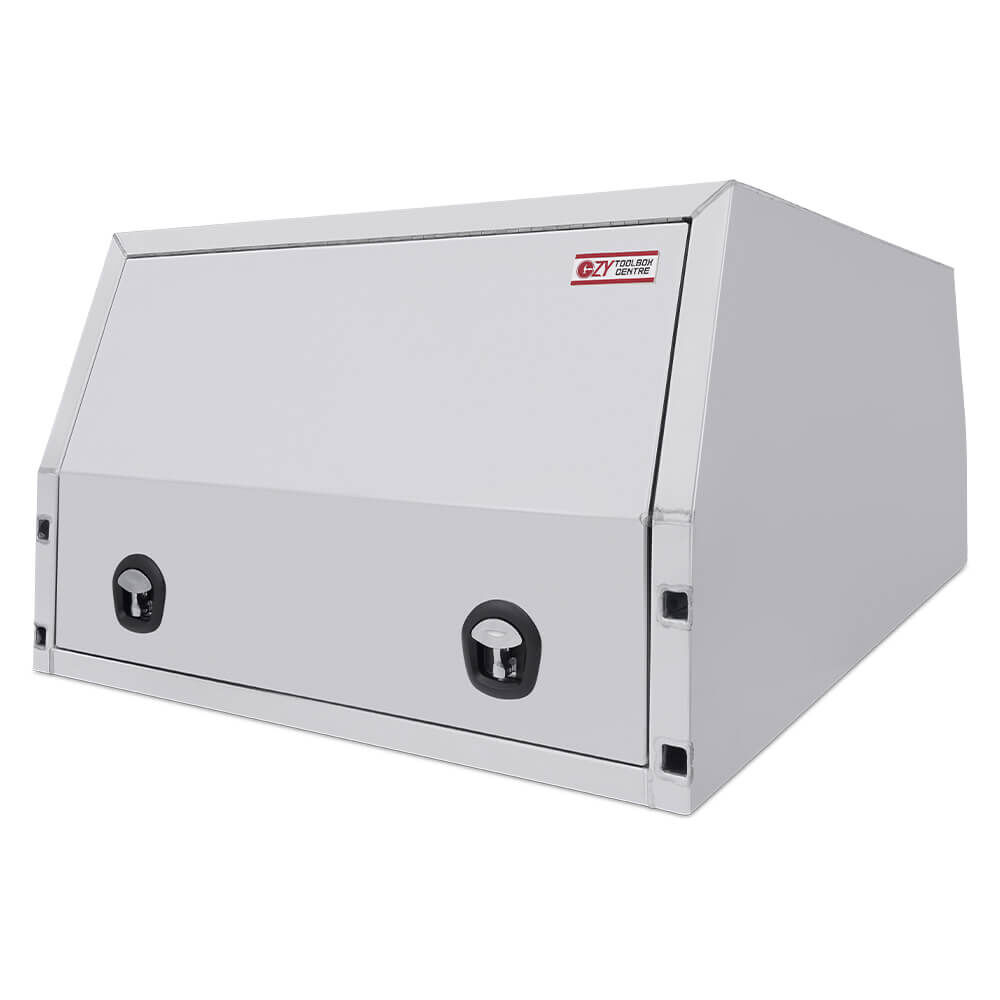 Ozy Toolboxes have a range of Premium Aluminium Canopies built to withstand the toughest of conditions. Whether you’re storing tools, machinery, camping gear and anything in between, our full seam welded units made from high grade aluminium, combined with the composition of whale tail compresson locks for optimum security, make our canopies perfect to suit your storage needs. Plus, our cushion seals ensure a weather and dust resistant canopy to keep your belongings secure and dry. Each box comes fully reinforced with bracing for a spare wheel carrier and adjustable gas strut brackets, so you can adjust how far the door opens up., Great if you are running an awning. These canopies not only look great but they are Durable, Reliable and extremely Affordable.