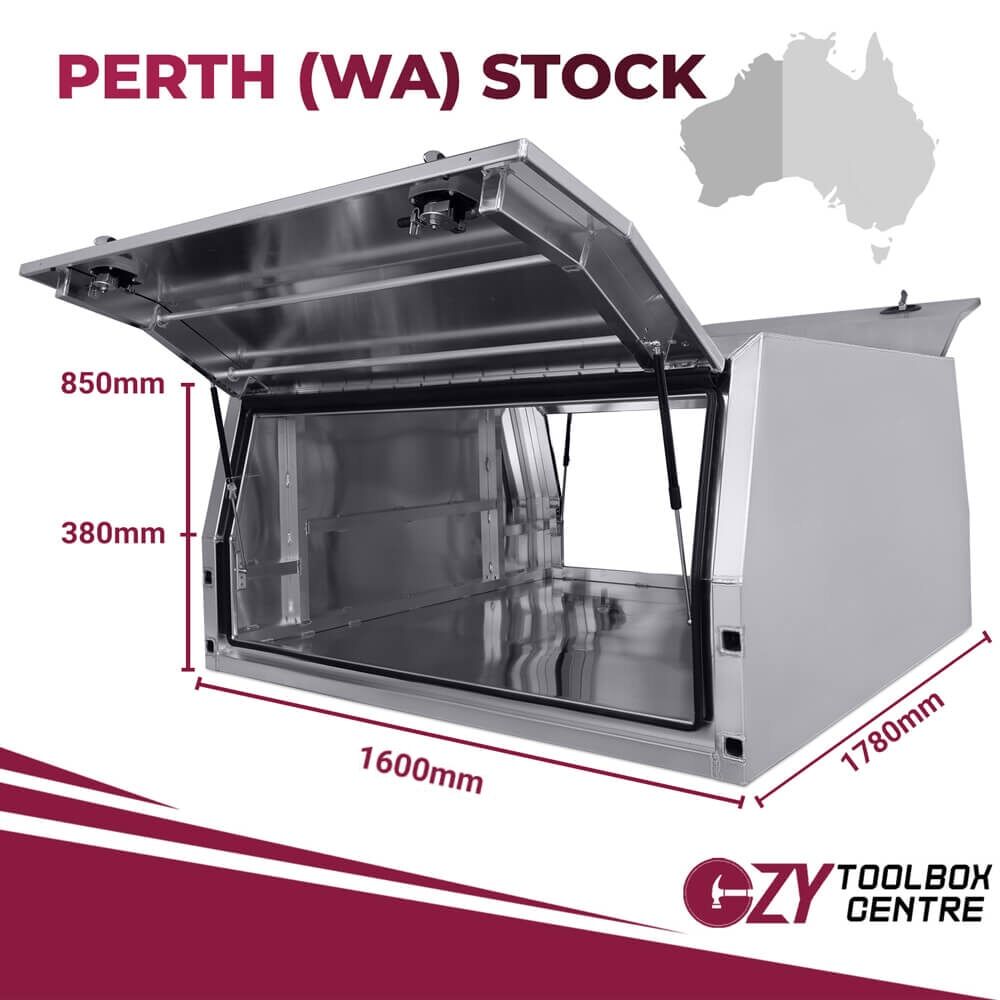 Ozy Toolboxes have a range of Premium Aluminium Canopies built to withstand the toughest of conditions. Whether you’re storing tools, machinery, camping gear and anything in between, our full seam welded units made from high grade aluminium, combined with the composition of whale tail compresson locks for optimum security, make our canopies perfect to suit your storage needs. Plus, our cushion seals ensure a weather and dust resistant canopy to keep your belongings secure and dry. Each box comes fully reinforced with bracing for a spare wheel carrier and adjustable gas strut brackets, so you can adjust how far the door opens up., Great if you are running an awning. These canopies not only look great but they are Durable, Reliable and extremely Affordable.