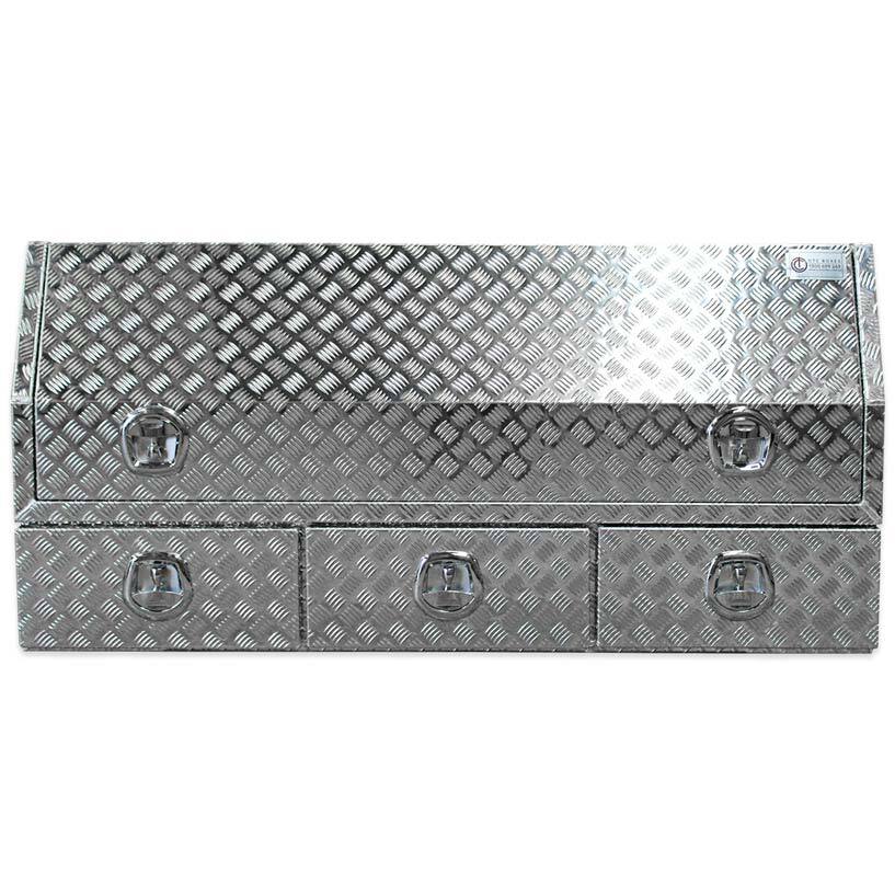 Our OTC-V Series range with external drawers, is Constructed from premium marine grade checker plate aluminium. Using only the highest quality parts, these toolboxes feature tig welded seams, whale tail compression locks, adjustable shelf, heavy duty drawer slides with 50KG rating, weather and dust resistant seals along with dual gas struts. These boxes are designed to not only look great, but to also be extremely Affordable, Reliable and Durable.