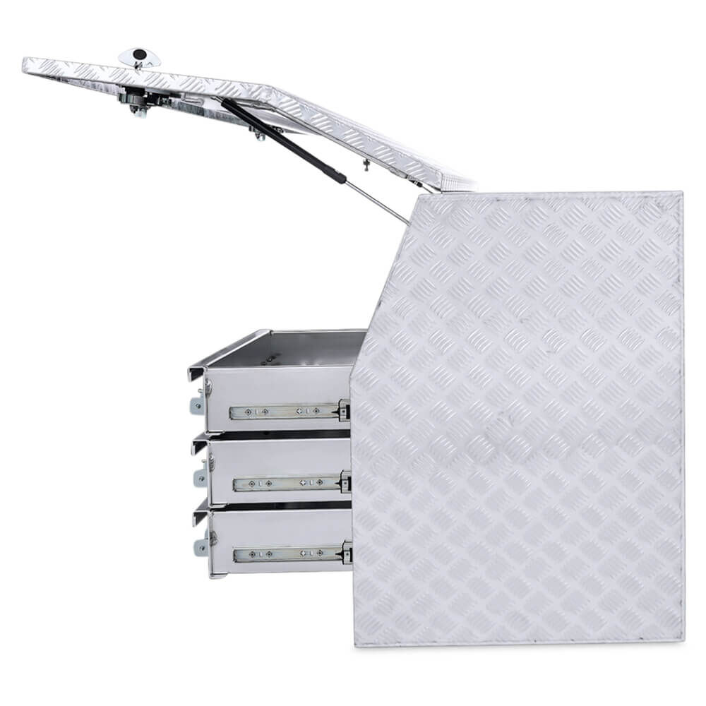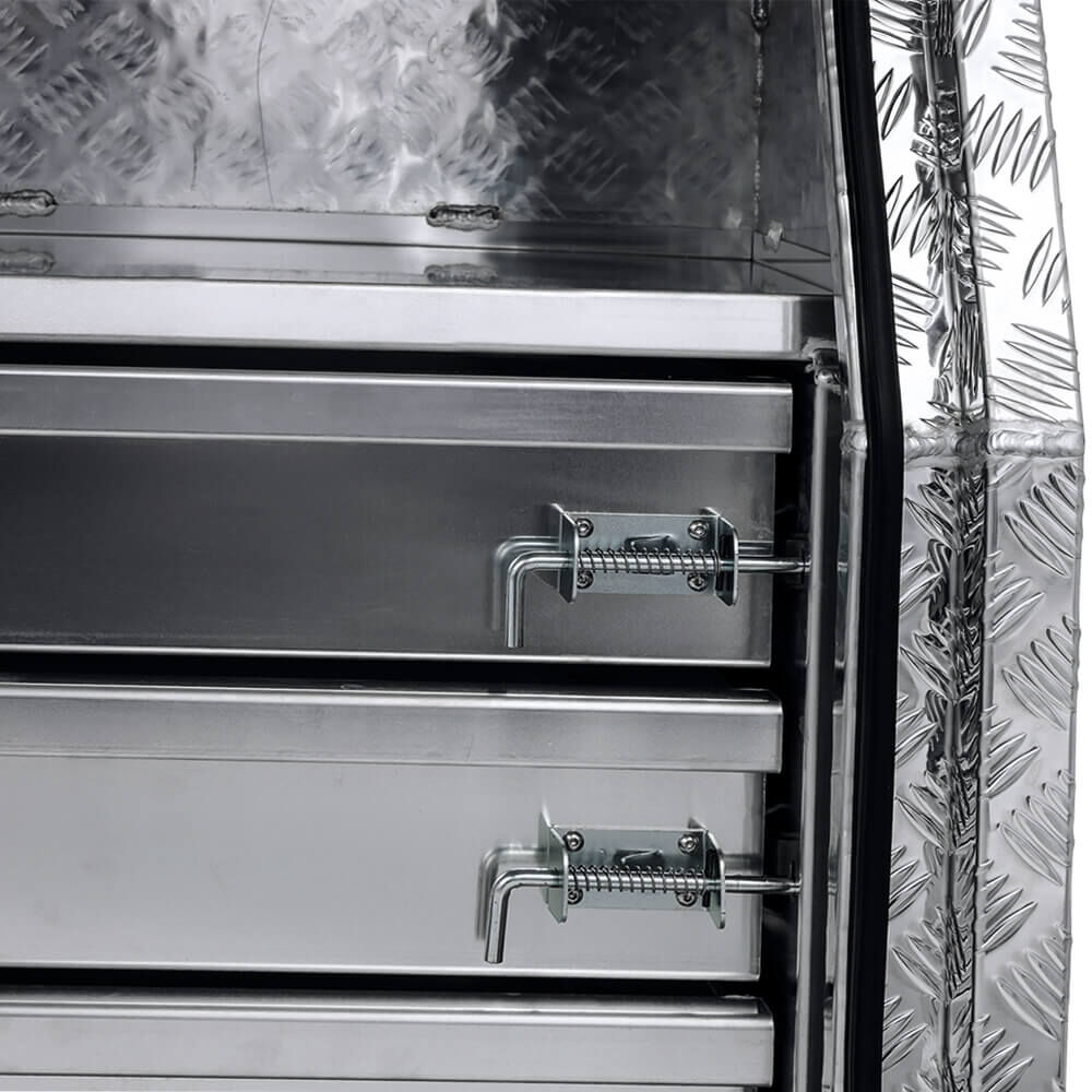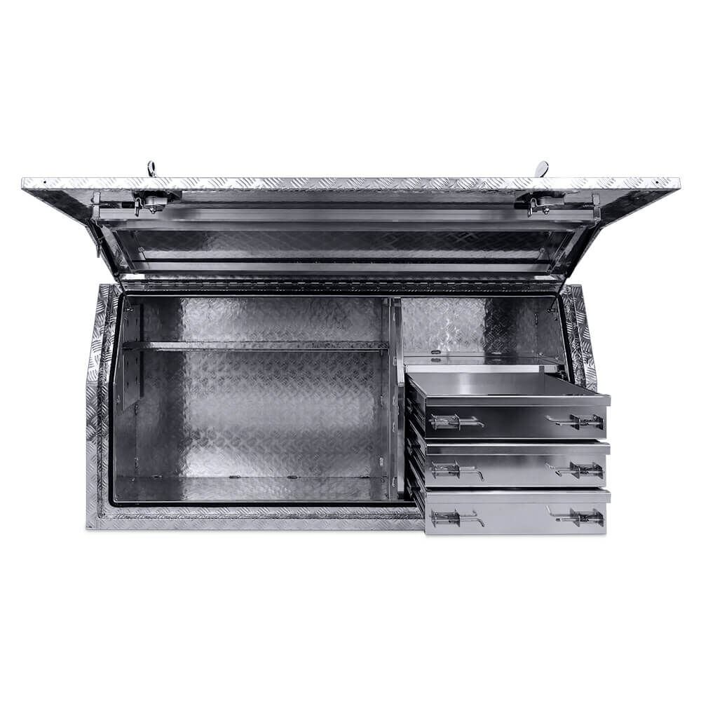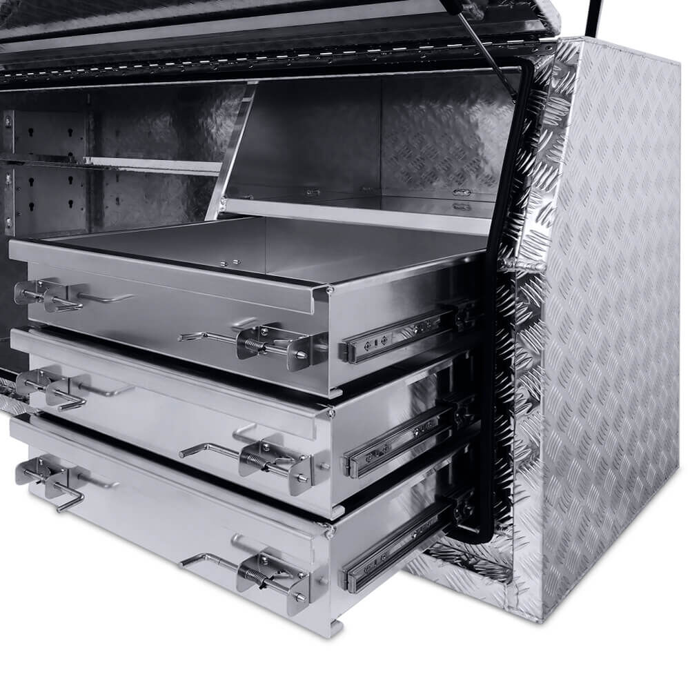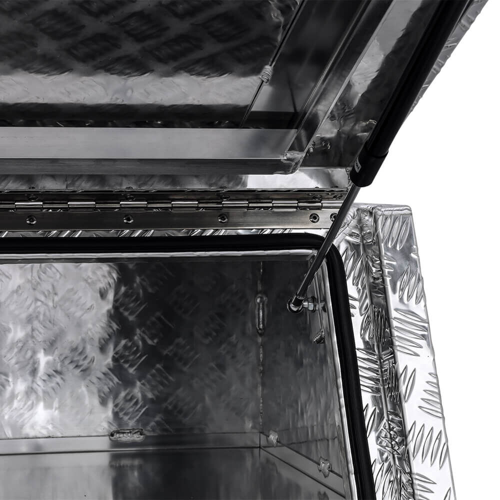 High-quality aluminium toolboxes made for the toughest of conditions. Full seam welded units made from high-grade aluminium to suit your storage needs. Perfect for storing tools, machinery, camping gear, and anything in between. Cushion seal to provide a weather and dust resistant box to keep your belongings dry. These toolboxes are suitable for utes, trucks, caravans, and trailers. Call us on 1300OZYBOX (1300-699-269) for all your toolbox needs!