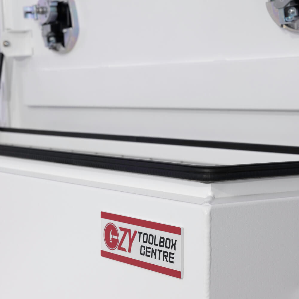 High-quality powdercoated white aluminium toolboxes made for the toughest of conditions. Full seam welded units made from high-grade aluminium to suit your storage needs. Perfect for storing tools, machinery, camping gear, and anything in between. Cushion seal to provide a weather and dust resistant box to keep your belongings dry. These toolboxes are suitable for utes, trucks, caravans, and trailers. Call us on 1300OZYBOX (1300-699-269) for all your toolbox needs!