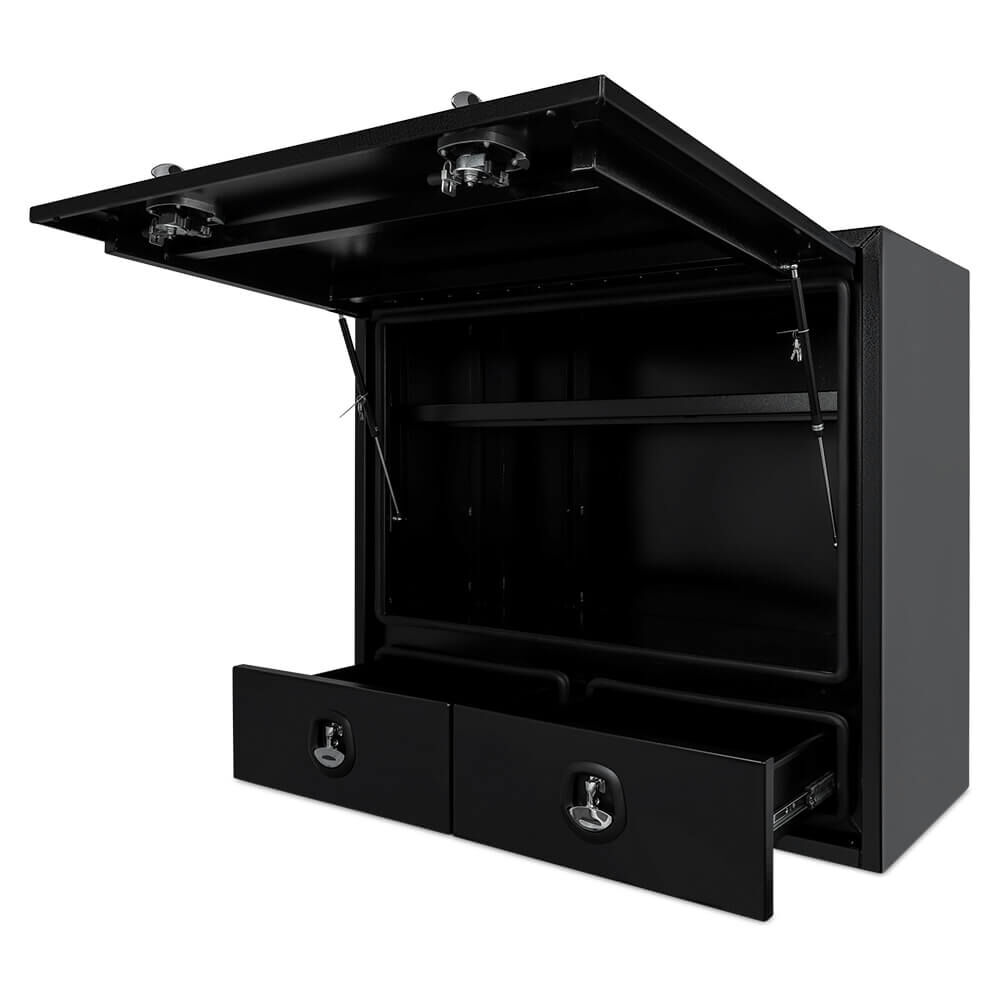 Truck Box Half Lid 2 External Drawers Pro-Series 1400mm x 600mm x 1200mm OZY-1461FP-2D-B Black