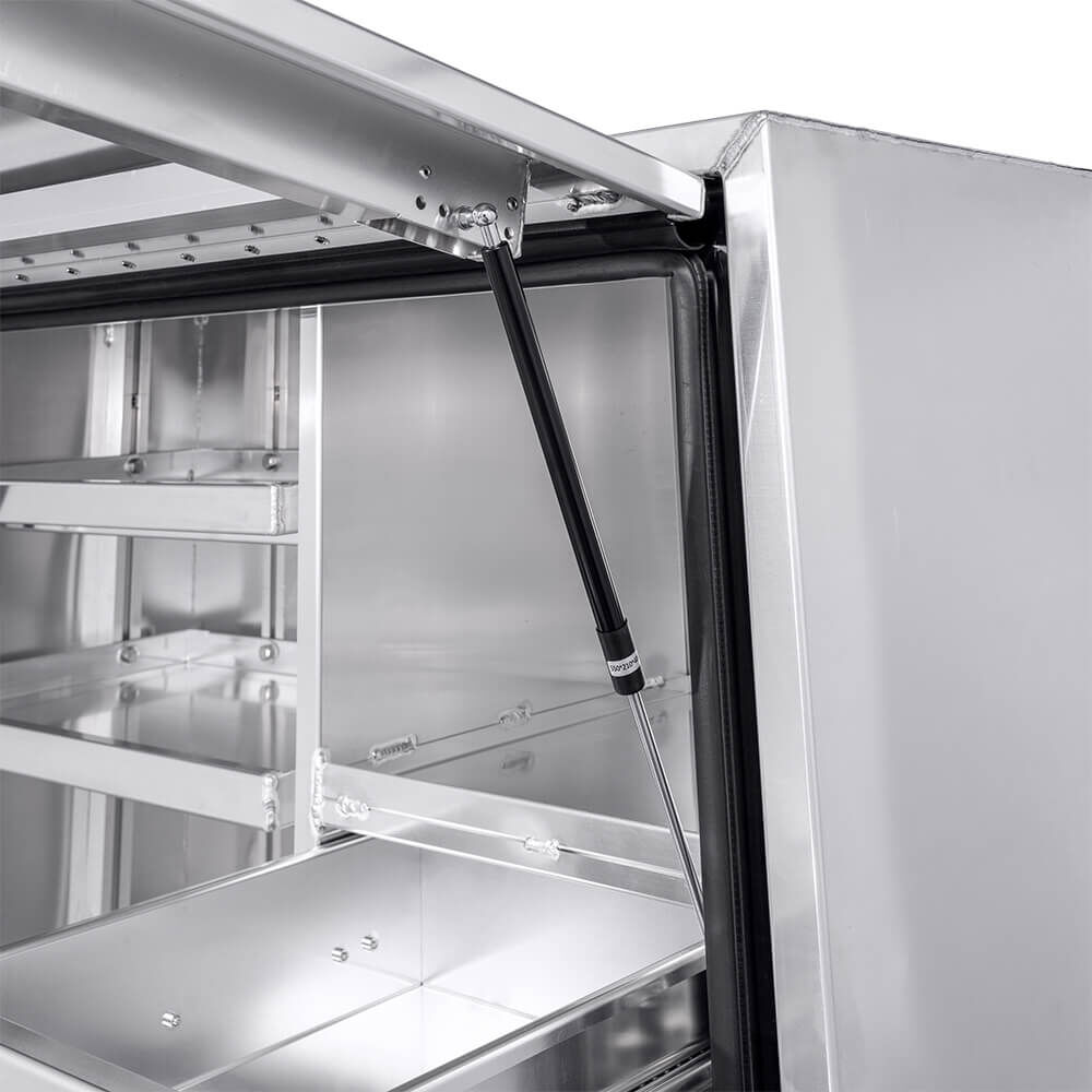 High-quality Pro Series aluminium truck toolboxes made for the toughest of conditions. Full seam welded units made from high-grade aluminium to suit your storage needs. Perfect for storing tools, machinery, camping gear, and anything in between. Cushion seal to provide a weather and dust resistant box to keep your belongings dry. 40x40 reinforced lids for extra strength and security, along with C-Channel reinforced sides walls and roof for added strength and stability. All drawers come with heavy duty locking slides with a 50kg load rating. These toolboxes are suitable for utes, trucks, caravans, and trailers. Call us on 1300OZYBOX (1300-699-269) for all your toolbox needs!