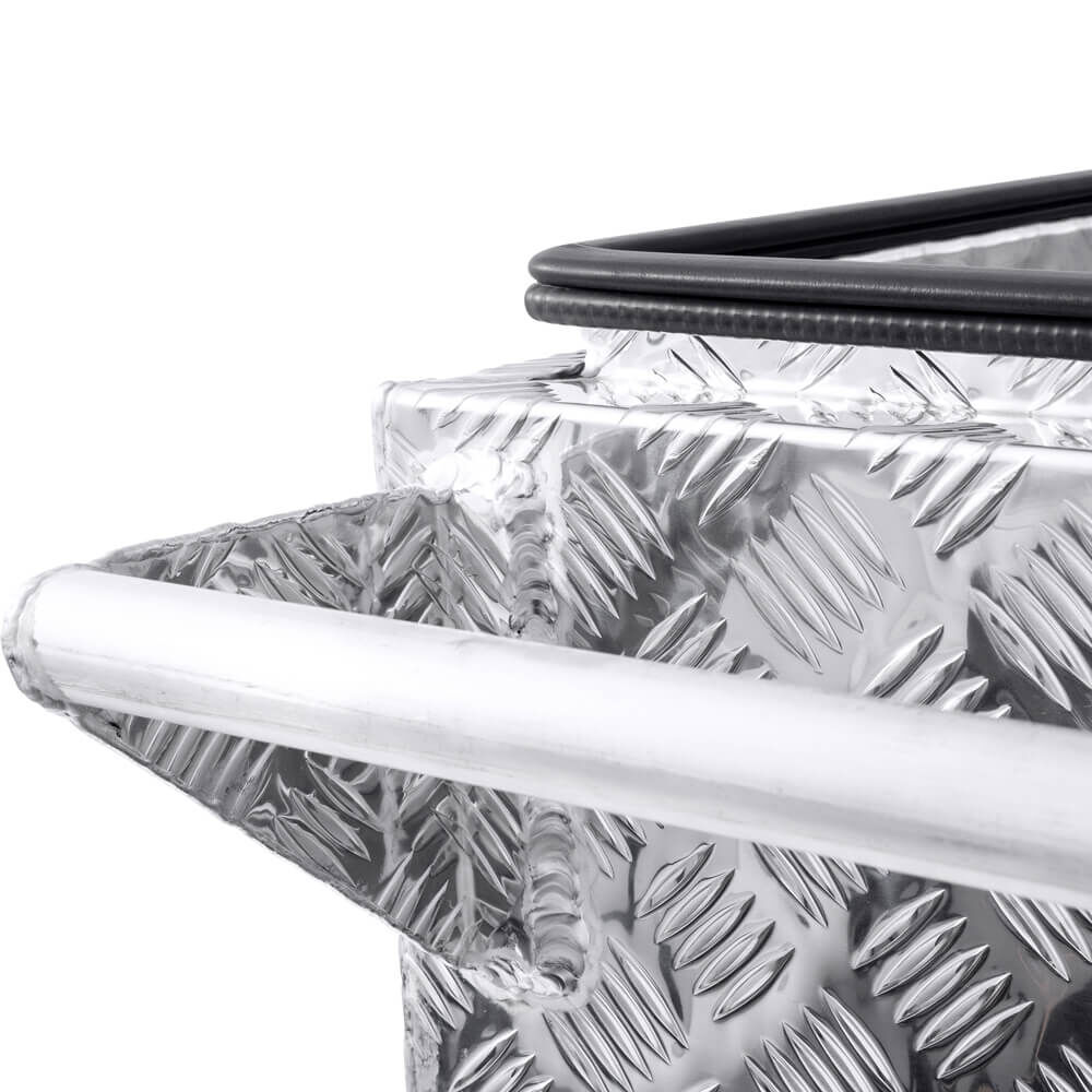 The OTC-V Series Job Site Toolbox is manufactured from 3mm heavy duty aluminium checker plate, designed for superior strength. The perfect solution for storing tools and machinery on site, this toolbox is key lockable with heavy duty stainless steel locks, fully seam welded to keep your tools and gear safe and dry from the elements. Easy to move around using heavy duty 100mm polly casters, every trading needing to store tools on site needs one of these!
